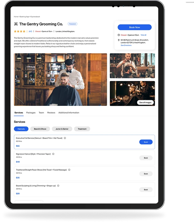 ExpressBook helps barbershops take bookings, send reminders, and get paid automatically, so you focus on cutting hair, not answering phones.