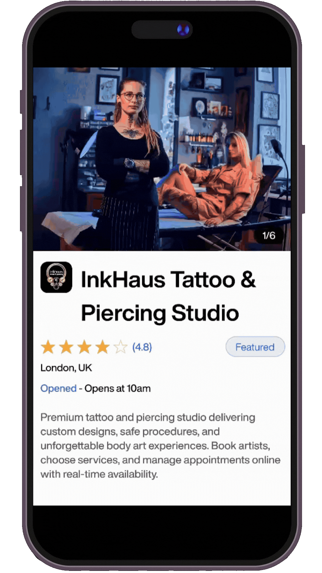 Let clients book consultations, tattoos, or piercings anytime.